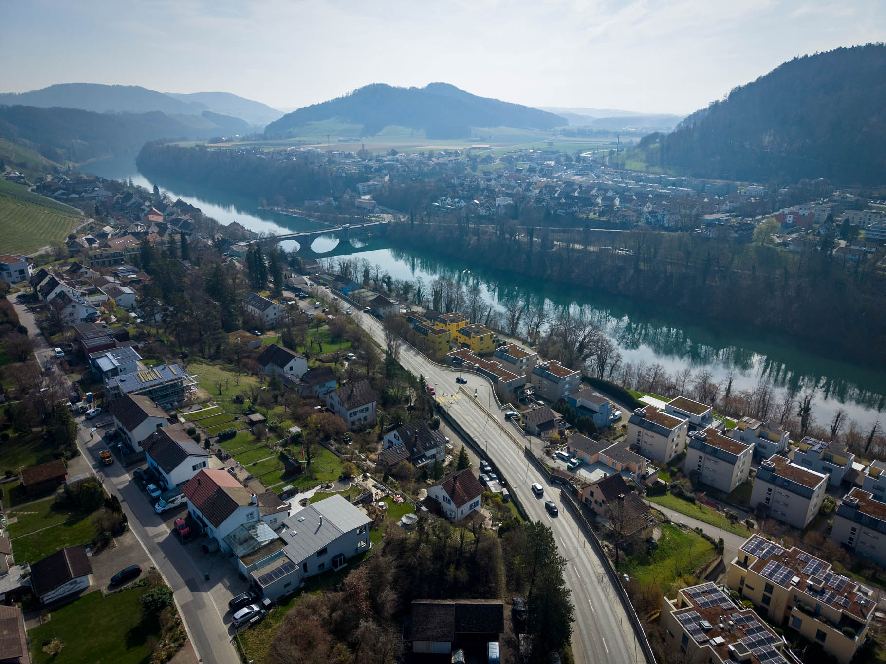 Auch die Lage überzeugt: Einkaufsmöglichkeiten sowie wunderschöne Naherholungsgebiete entlang des Rhein befinden sich in unmittelbarer Nähe. Gleichzeitig profitieren Sie von einer guten Verkehrsanbindung mit raschen Verbindungen Richtung Bülach, Winterthur und Zürich. Auch der Weg nach Deutschland über Rafz ist bequem erreichbar.