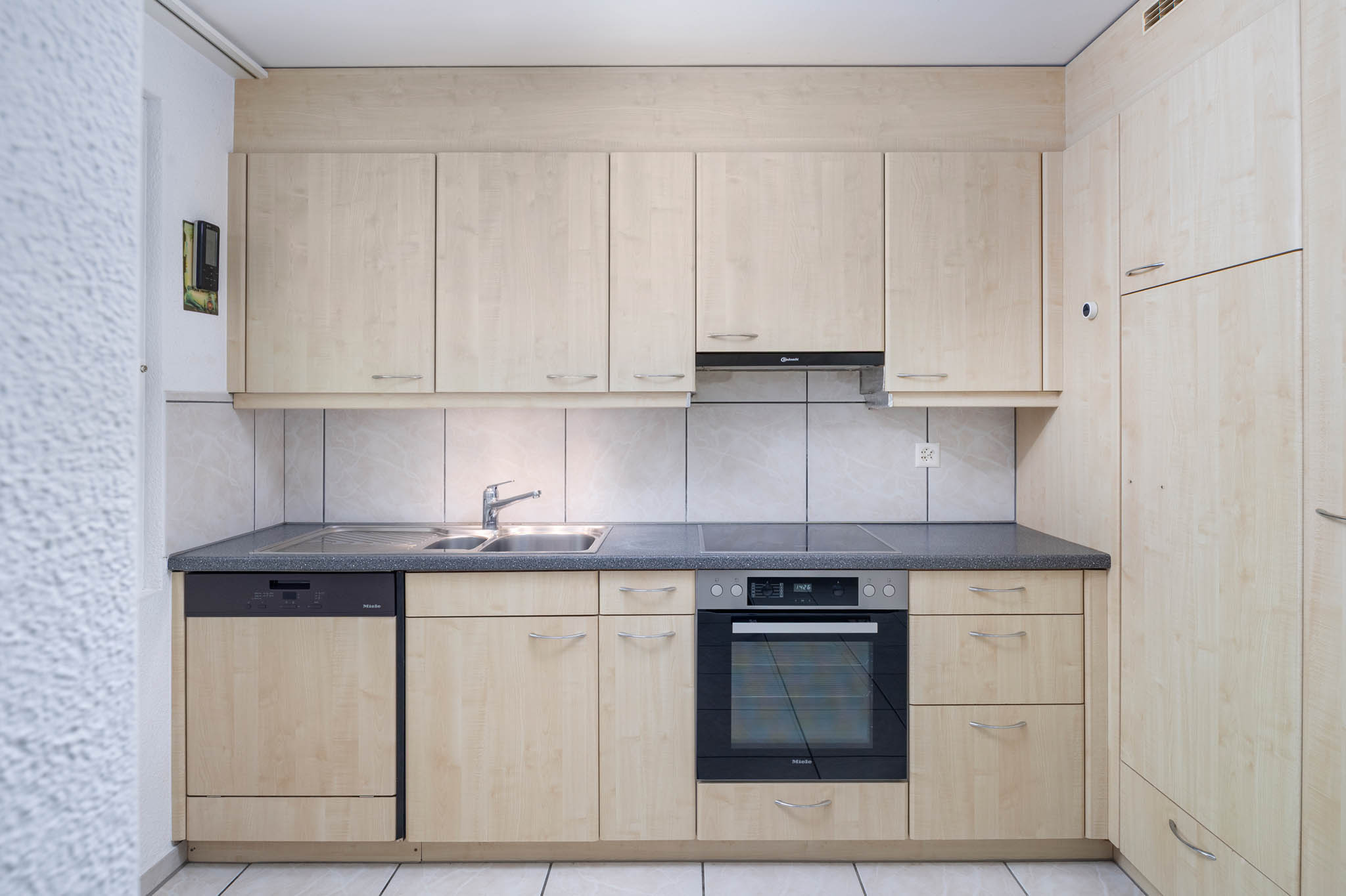 Die Küche ist ein fast geschlossener Raum. Auch wenn nicht riesig, ist die Küche praktisch doch eingerichtet, hat genügend Arbeitsfläche.