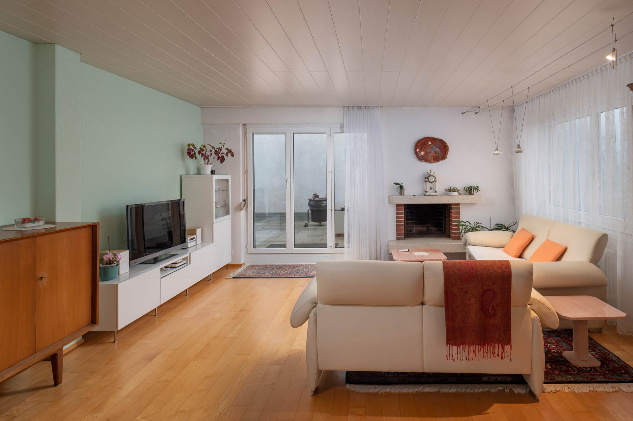 Der lichtdurchflutete Wohn- und Essbereich mit Cheminée schafft eine warme, einladende Atmosphäre und bietet direkten Zugang zur grossen Terrasse, welche teilweise gedeckt ist und mit einer grandiosen Weitsicht begeistert – der perfekte Ort zum Entspannen oder Geniessen geselliger Stunden. Ein Reduit auf der Terrasse sowie ein weiteres Reduit in der Wohnung sorgen für zusätzlichen Stauraum.
