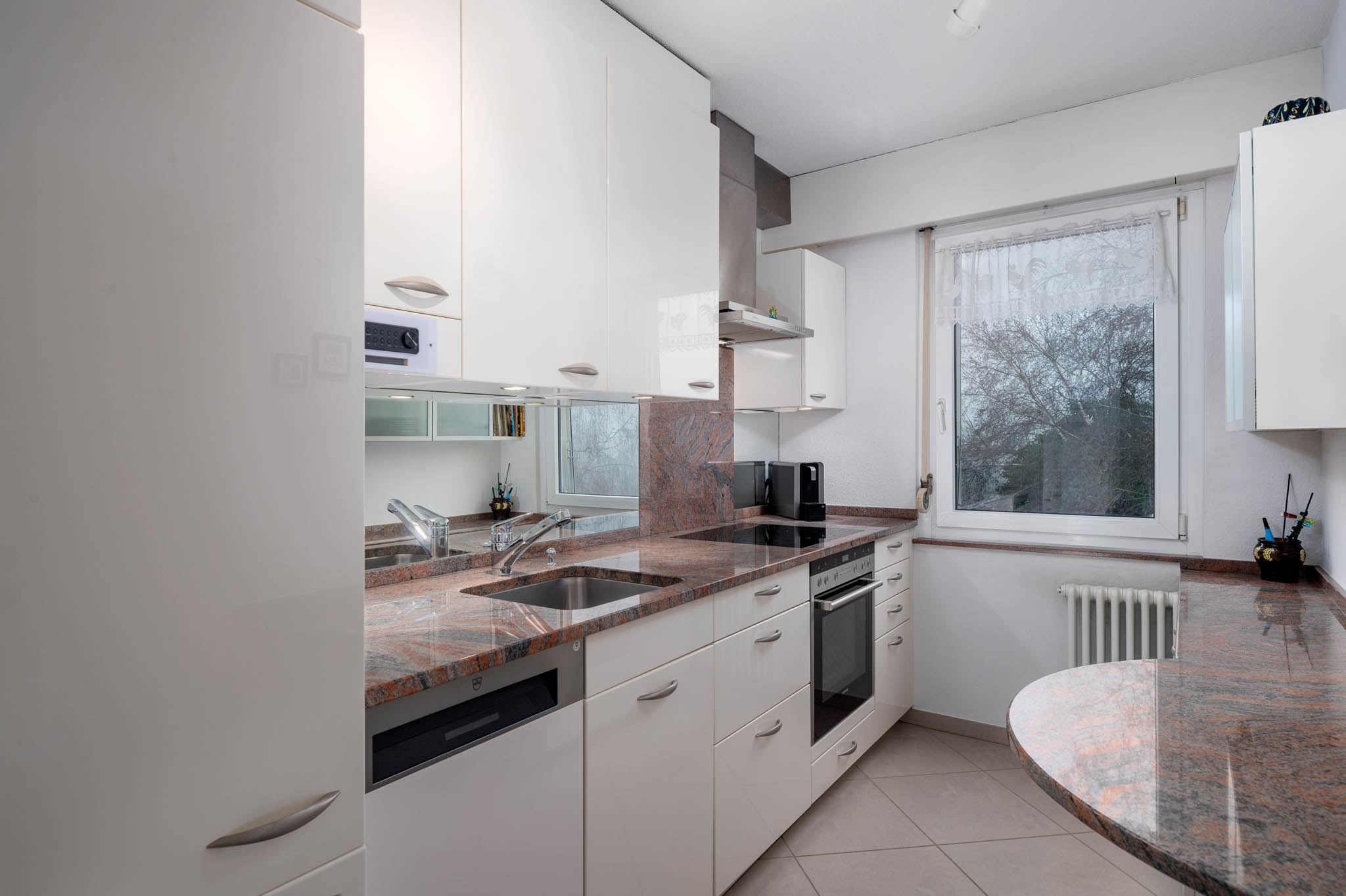Die Küche wurde 2010 erneuert und präsentiert sich funktional und zeitlos.